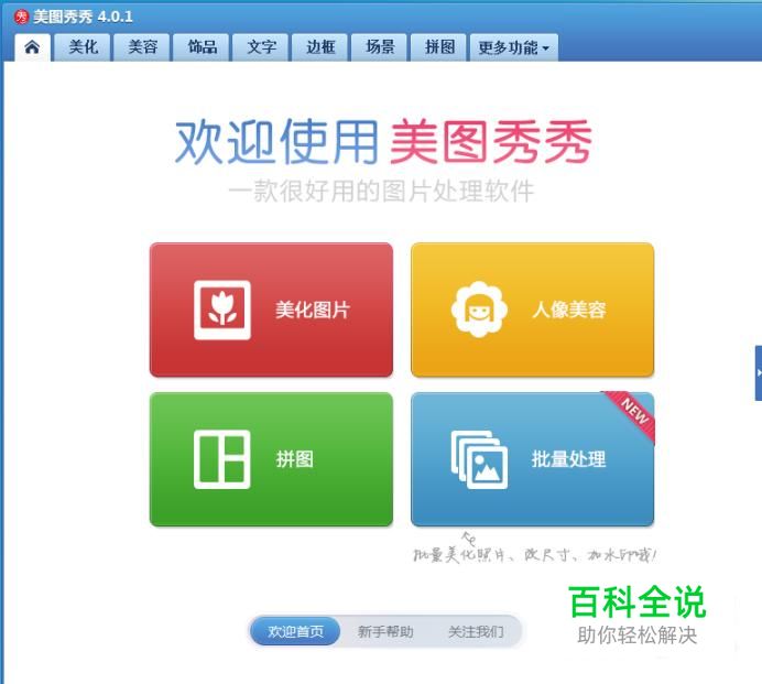 在桌面上找到美图秀秀的快捷图标,双击打开美图秀秀这款软件,进入美图秀秀的操作界面,如图所示: