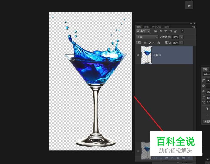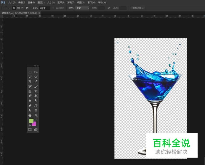 打开我们的素材图像,可以看到杯中的颜色是蓝色的。