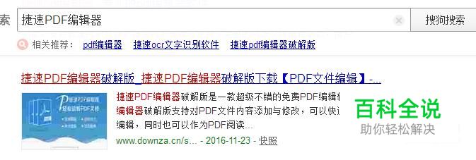 首先,打开桌面上的搜狗浏览器,搜索PDF编辑器,然后下载安装一款PDF编辑器