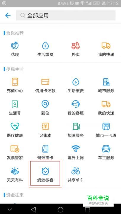 在便民生活里面,我们找到“蚂蚁微客”,如图所示。