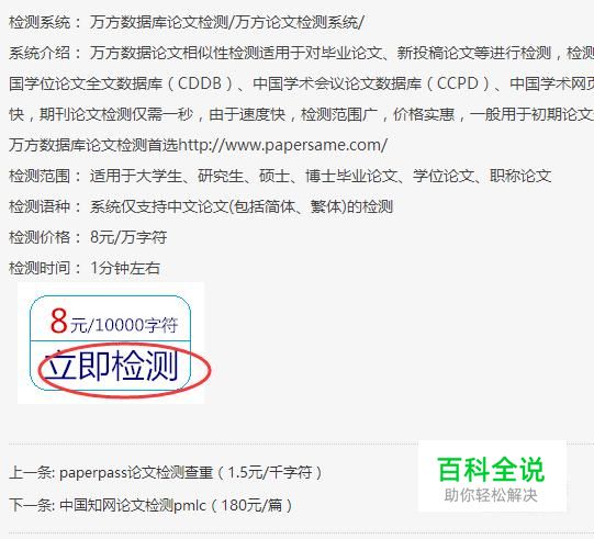 标注的检测价格为8元/1万字,选择立即检测。