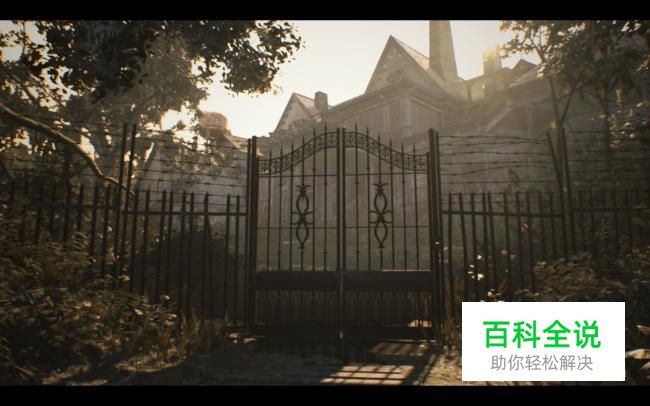 进入游戏后向前行进来到一个被锁住的庄园门口。