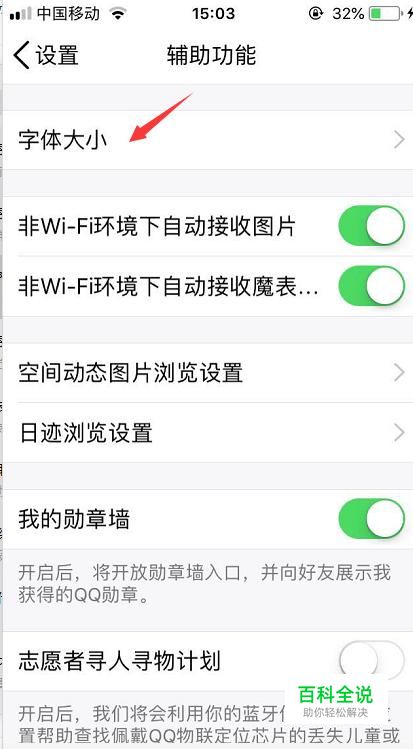 在辅助功能里面第一个就是字体大小的设置,点击一下。