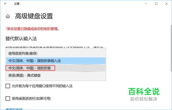 弹出的界面,我们选择微软拼音,这样我们就更改了默认输入法了。