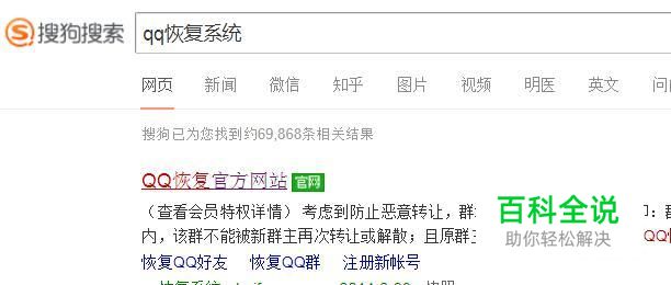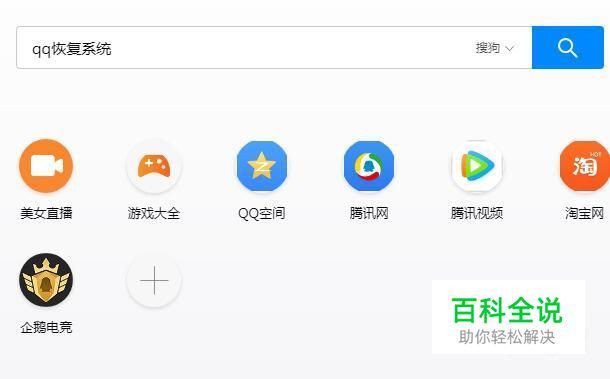 首先,在搜狗浏览器中输入QQ恢复系统并点击回车键,如下图所示。