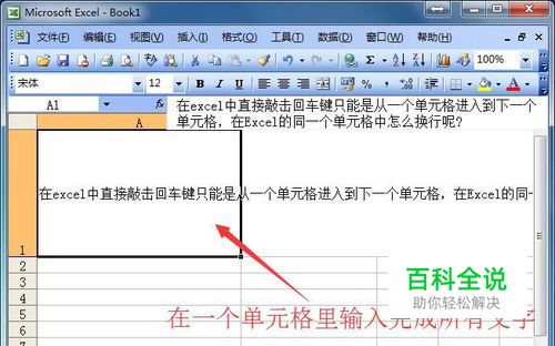 我们先在一个单元格里输入全部的内容,如图所示,不要担心内容超出单元格。