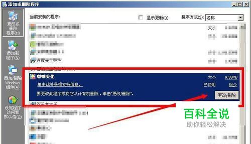 打开控制面板后找到添加与删除程序,在列表中找到嘟嘟美化,卸载就可以了。