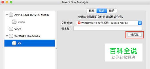选择好文件系统之后,你也可以重新设置卷的名称,然后直接点击“格式化”按钮,就可以将磁盘格式转换为NTFS了。