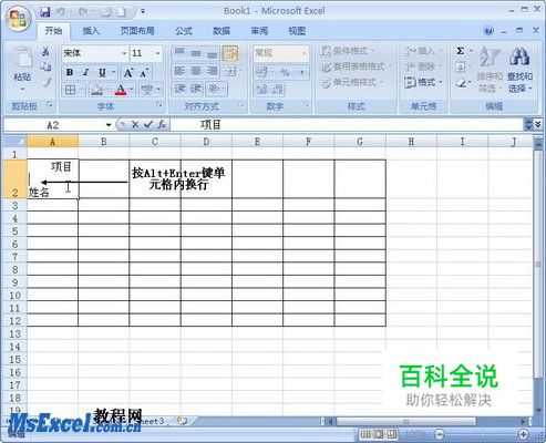第4步,返回Excel2007工作表窗口,适当调整文本位置使其更美观。