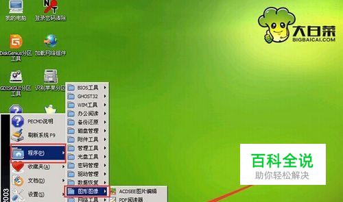 2.成功登录到大白菜pe系统桌面后,点击左下角开始菜单 - 程序 — 图形图像 — 屏幕截取GIF,点击打开GIF截图工具 。如下图所示