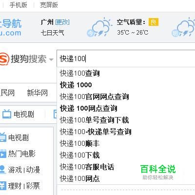 在搜狗搜索这里输入“快递100”,点击搜索,搜索出快递100的官方网站。