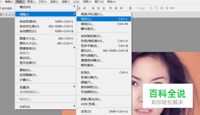 点击 图像>调整>色阶,增大图片的明暗对比,如下图