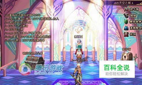 画面中左下方红格为生命值(HP),右下方蓝格为当前的法力值(MP)。 左边有物品仓库,右边有邮件箱。玩家可以通过邮件箱进行邮件发送和道具交换。 经常使用的社区菜单在画面的右上部分,有决斗场、战场、推荐伙伴、系统配对、社区相关菜单。 右上端有显示选择进入的频道信息。