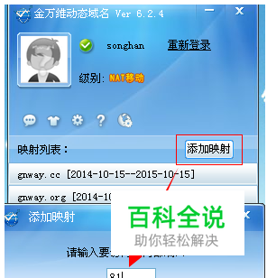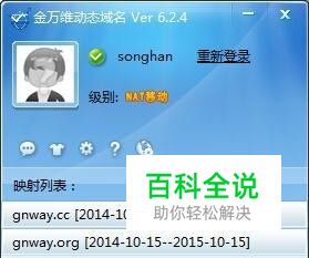 切换完成后,使用注册好的NAT移动版帐号登录动态域名客户端,即可获得一个NAT移动版的域名,如图: