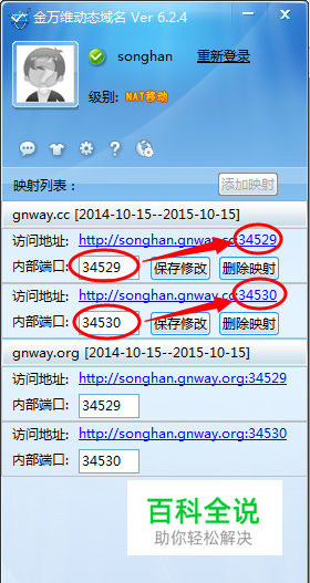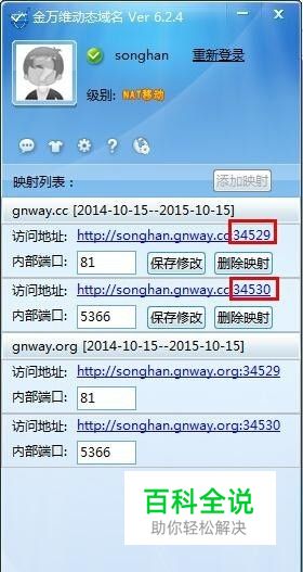 第三步,再次登录动态域名客户端,前面添加好的端口也修改为最新的端口,如图: