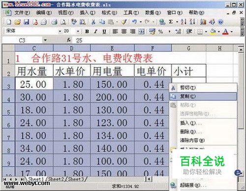 第1步,在Excel2003中选中数据所在的单元格,并依次单击“编辑”→“复制”菜单命令,如图所示。