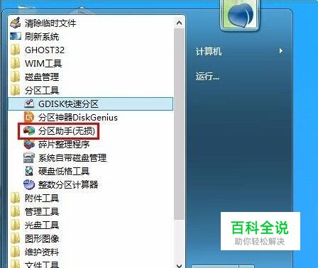 进入老毛桃win8pe,接着运行开始菜单无损分区助手,如图所示: