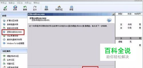 打开分区助手后,点击向导列表中的“迁移OS到SSD/HDD”项目,随后根据提示进入下一步,如图所示: