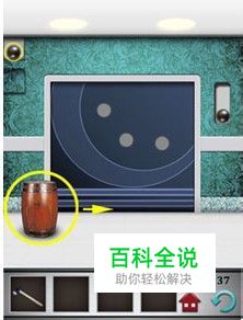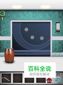 第三十七关,电梯门上有三盏灯,解开一个机关会亮起一盏灯,三盏灯全亮的话电梯门就自动打开了。点击左上角的可滑动木板打开暗格,点击拾取里面的小钢珠解开第一个机关。