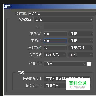 首先,启动PS软件,进入到操作界面。CTRL+N,新建一个500X500像素的画布。