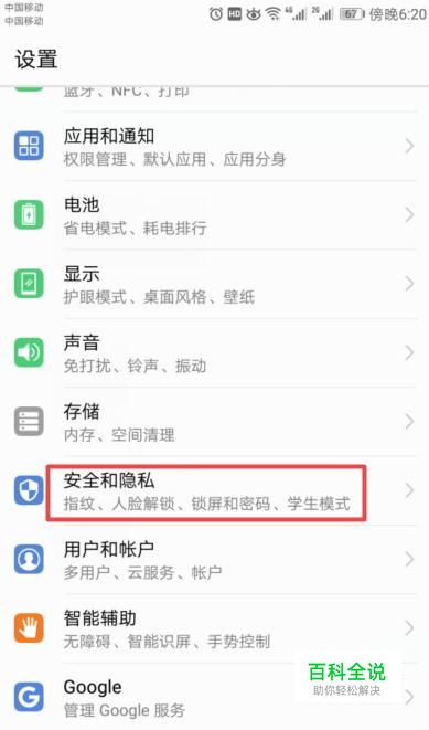 进入设置后,我们点击安全和隐私;