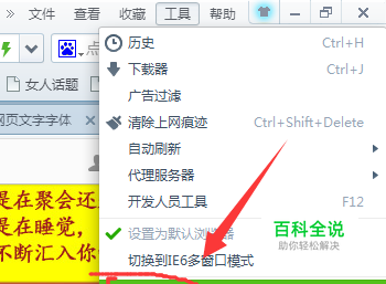 打开浏览器后,我们看到的网页字体都是默认的宋体,在右上角点击【工具】选项。
