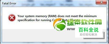 使命召唤10fatal error错误怎么办?使命召唤10发布几天时间了,但是发现很多玩家都遇到了这样或是那样的问题,下面绿茶小编为大家带来使命召唤10出现fatal error错误解决方法。 从提示的内容来看是系统内存不能满足最低配置的问题,从而导致无法运行游戏,使命召唤10幽灵最低内存是达到6GB的,所以出现这样的问题。玩家只要下载一个免6G内存限制破解补丁就可以解决这个问题了!不过不得不说,这游戏真坑,明明配置要求写那么低,结果来一个6G内存限制!