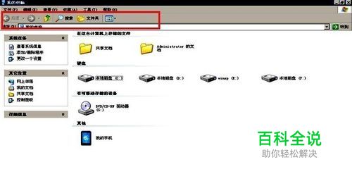 就以我的电脑为例。在打开我的电脑后,我们发现工具栏中的按钮太少了。我们可以对工具栏中的按钮进行添加。