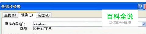 二、然后打开查找替换对话框(快捷键Ctrl+F),在“查找内容”框中输入将被替换的文字,在 “替换为”框中输入“^c”。如下图,单击全部替换即可。 注意:输入的一定要是半角字符,按住Shift再按横排上的数字6,字母c要小写。