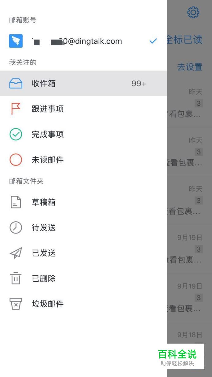 要添加其他邮箱,点击钉邮界面上的右上角设置图标进入。