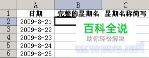 在Excel中,如何将给出的日期,诸如:2009-8-21、2009-8-22、2009-8-23……等,这样的日期,自动转换为当前对应的英文星期名称?