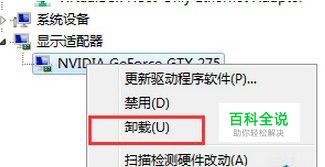 3、展开显示适配器,然后右键点击显卡,在右键菜单中选择“卸载”,如下图所示: