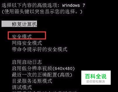 1、重启计算机,然后长按F8直到出现高级启动菜单,选择安全模式进入安全模式桌面,如下图所示: