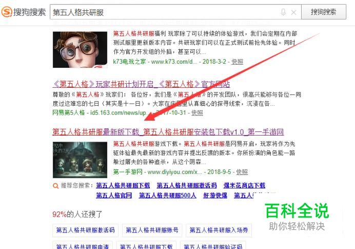 进入之后,搜索“第五人格共研服”,找到图示链接,点击并进入,如图所示。