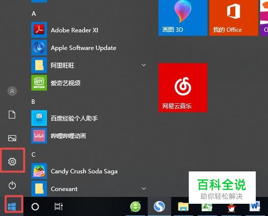 首先,我们点击电脑桌面左下角的微软按钮,弹出的界面,我们点击设置;