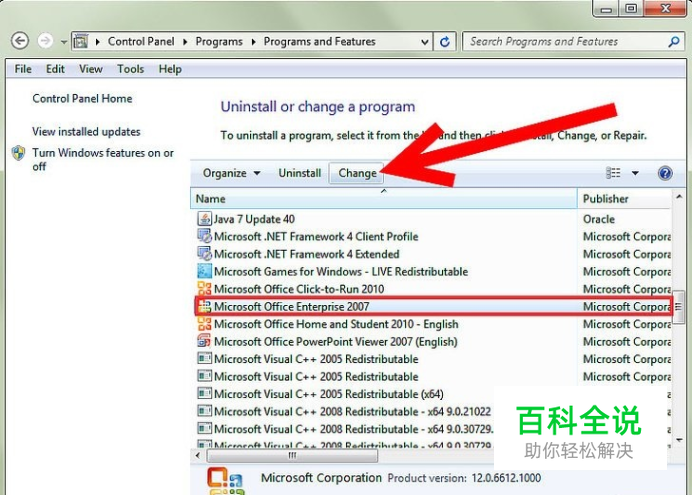 选择你安装的 Microsoft Office 版本,然后点击更改。它可能是 Microsoft Office 软件包的一部分,或者是单独购买的 Microsoft Office Word 软件。