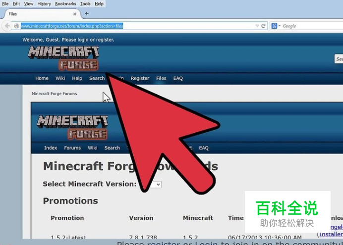 访问Forge官网。你可以从开发者网站上免费下载它,而且从官网下载会比较安全。这样就不会下载到含有恶意软件的Forge了。官方网站是http://files.minecraftforge.net/