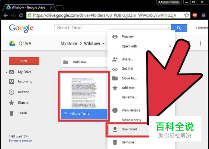 右键点击文件,选择“下载”,将文件保存为Word文档。网站会立刻把文件转换成Word格式,并下载到“下载”文件夹。 如果你想要将文件另存为其它格式,请查阅下一部分。 如果使用谷歌文档网站,而不是谷歌云端硬盘网站,请查阅下一部分。