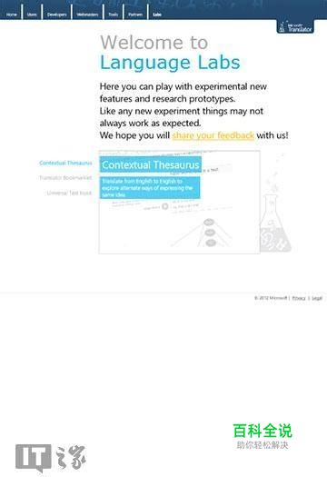 该功能来自微软翻译实验室,主要通过IE10浏览器收藏夹,实现翻译技术。