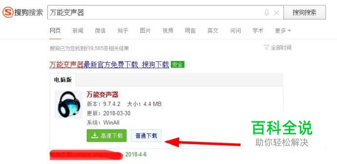 首先打开搜狗搜索引擎搜索“万能变声器”下载安装。如图