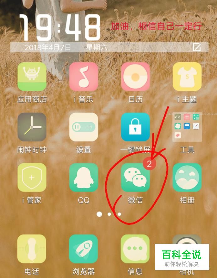 首先打开手机首页,找到并点击打开“微信”