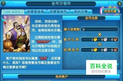 金币兑换: 见下图: 在金币兑换界面,您可以输入金券数,然后按照官方汇率换得金币。金币可以用在游戏内与玩家交易,但不可以在商城购买物品。