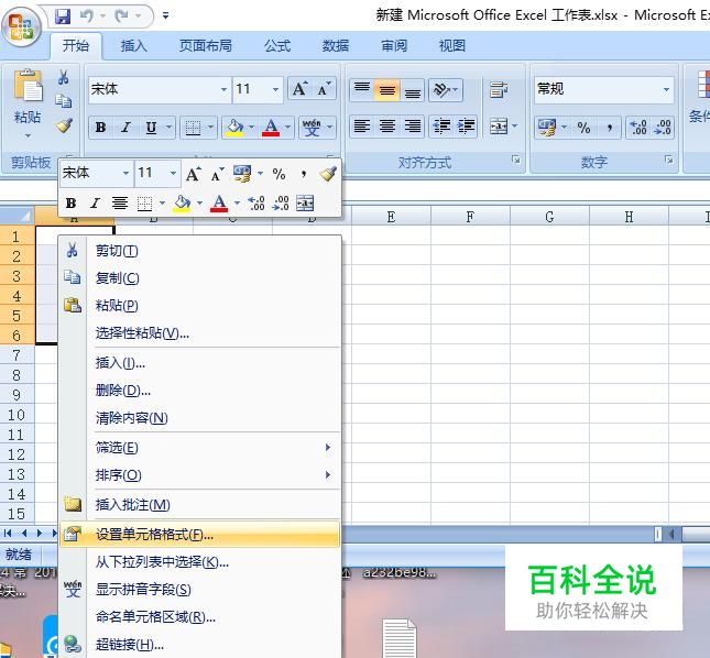 打开excel,选择要粘贴内容的单元格,点击右键,选择"设置单元格格式"。