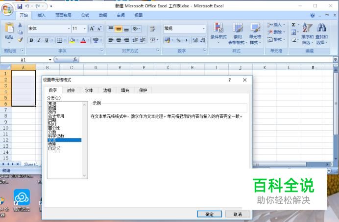 选择弹出的对话框中的"数字"选项中的"文本",然后点击确定。