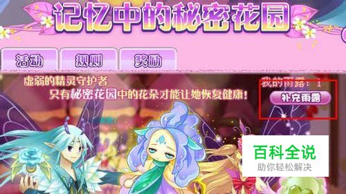 小花仙们可以通过玩露水小游戏额外获得雨露,露水小游戏的入口在记忆中的秘密花园活动中,如下图: