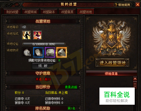 达到3级以上的9377奇迹来了战盟都会获得一块属于自己的战盟领地。为了更好地建设领地,战盟成员可要捐献领地物资来提升领地经验,进而提升领地等级,获得更好、更宽的领地。那么奇迹来了领地物资有哪些呢? 战盟成员可要捐献的奇迹来了领地物资共有4种,分别是顶级石料、高级石料、中级石料、初级石料。这四大石料属于矿产道具,是建设战盟领地不可获缺的稀有材料。越高级的石料,捐献后可获得的领地经验就越高。那么这些石料怎么获得呢 石料只能通过攻击其他战盟的守护女神获得。女神位于战盟领地的正中央,要攻击其他战盟的女神就必须进入其领地,如何进入其他战盟领地呢昨日掠夺排名前十的战盟会在奇迹来了混乱之治中生成传送门,每个传送门都有领地守护保护,击杀守护后即可进入对应战盟领地。 击杀其他战盟女神或掠夺其他战盟资源可以获得积分奖励,若在当日的领地掠夺排名前十,则第二天会在混乱之治地图出现战盟的传送门,为了更加地保护好战盟内的资源和女神,各位战盟成员在前往其他战盟掠夺资源或攻击女神时,也要注意与自己战盟的守护一起守卫传送门,杜绝一切想进入领地的敌人。 奇迹来了战盟领地等级提升后,领地加成也会随着提升。1级领地可使战盟成员在本方领地时攻击+4%、防御+4%、生命+4%,非本战盟玩家在本方战盟领地时攻击-4%、防御-4%。