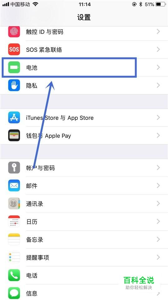接着点击电池,如下图所示。