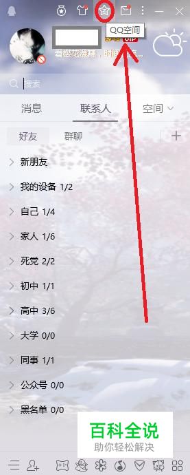 首先,在电脑端登录腾讯QQ,点击正上方的“QQ空间”选项。