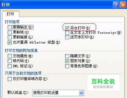 解决方法: 把“后台打印”的√取消,正常了! 点“选项”