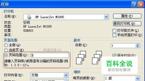 M1005打word ,在打印里选“全部”,“当前页”都正常,选择“页码范围”时,当文档10多页,输入3,确定,就会把第3页之后的所有页都打出来,选择“页码范围”为3-5,打出的也是3页之后的所有页。